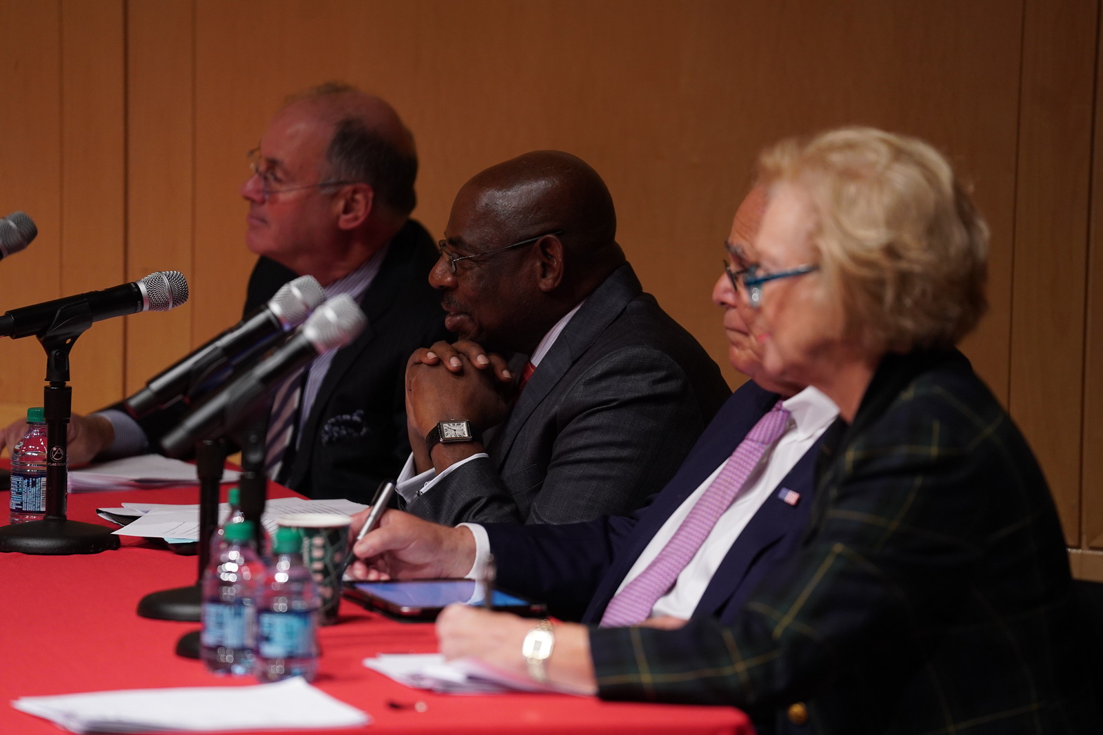 This year, the question was based on the rights guaranteed by the First Amendment. A dozen teams of finalists presented their essays through skits and songs performed before the four judges: Rendell Center co-founders Edward G. Rendell, the former governor of Pennsylvania, and the Hon. Marjorie O. Rendell, a federal judge on the U.S. Court of Appeals for the Third Circuit, as well as the Rev. Dr. Herb H. Lusk, of Greater Exodus Baptist Church in Philadelphia, and Philadelphia attorney Larry Brown.