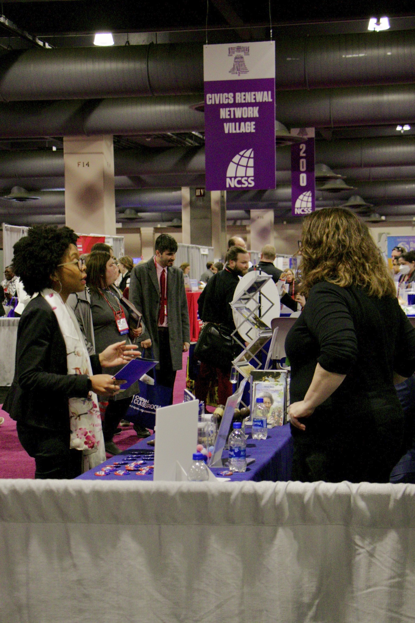 In the conference’s exhibit hall, teachers visited the Civics Renewal Network Village, where they could talk to the partners and learn about the partners’ classroom resources, programs, and professional development opportunities.