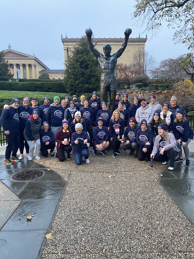 For conference visitors to Philadelphia, the bucket list wouldn’t have been complete without a trip to the Art Museum, where they could follow the footsteps of Rocky Balboa in the “Rocky” movie. Undeterred by the damp weather, about 60 enthusiastic partners and educators gathered at 7 a.m. on Saturday for the Rocky Run, then posed with the Rocky statue for a 2022 NCSS memory.