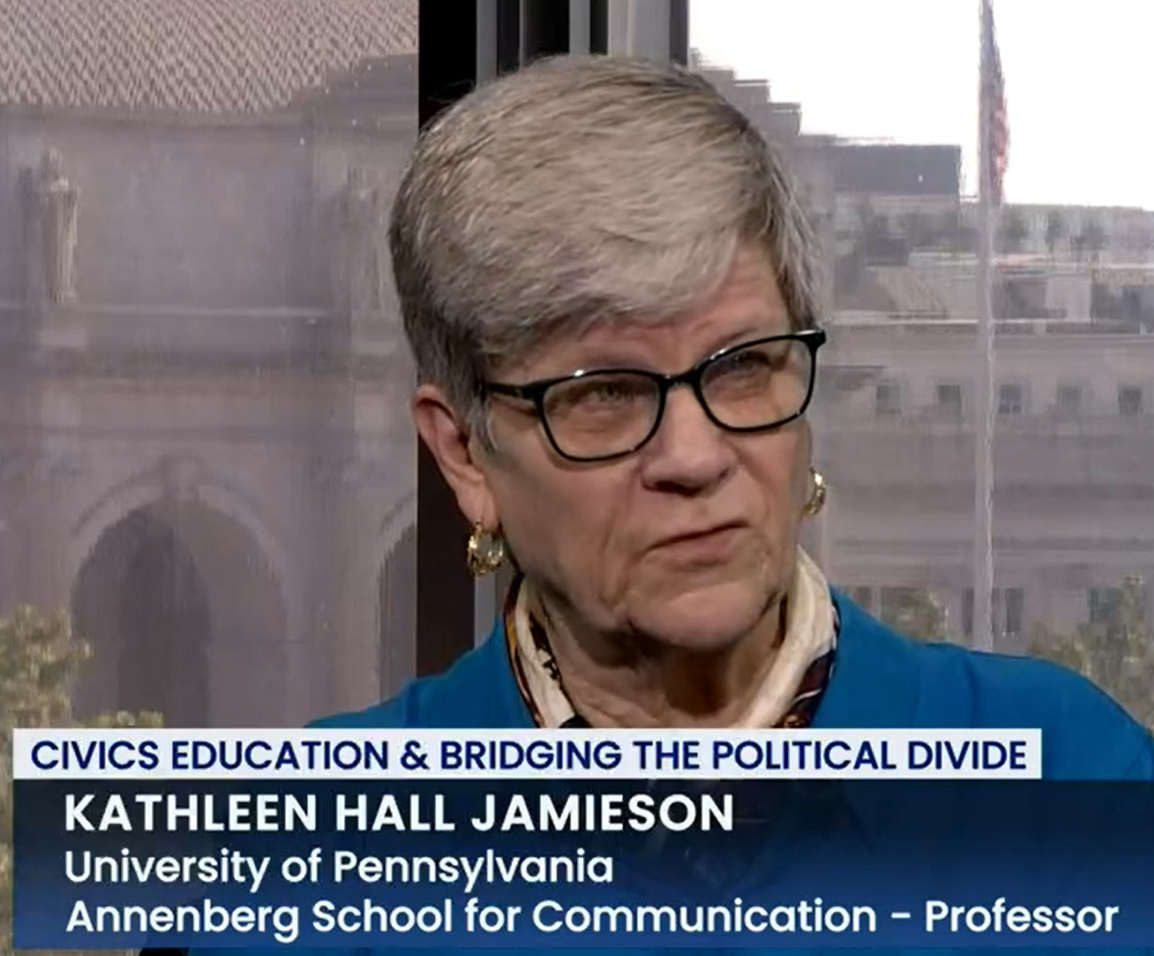 On Sunday, August 20th, 2023, Jesse Holland of C-SPAN’s “Washington Journal” hosted Kathleen Hall Jamieson, director of the Annenberg Public Policy Center (APPC) of the University of Pennsylvania and professor at the Annenberg School for Communication, for an hour-long program devoted to using civics education as a tool to bridge political divides.