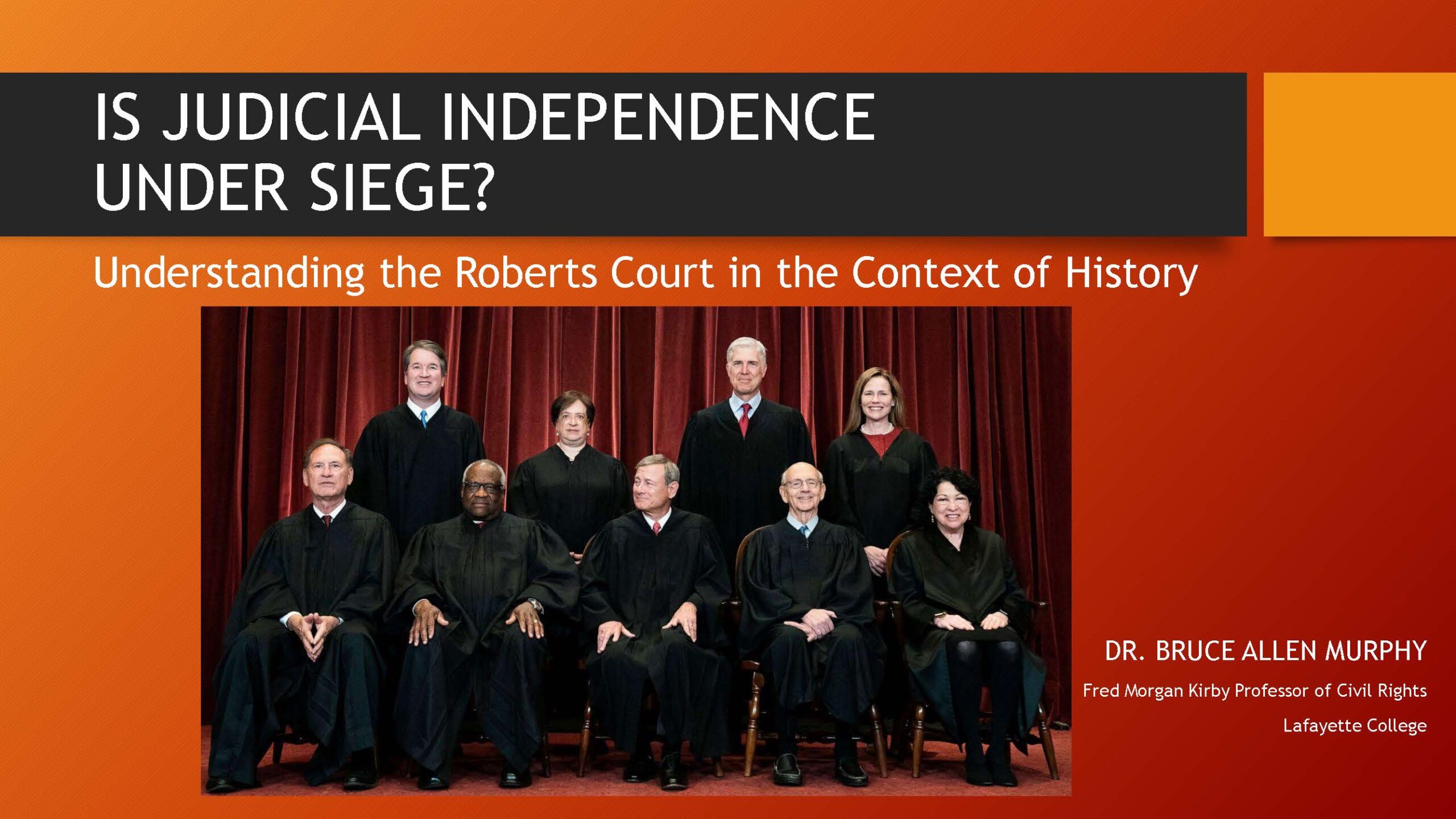 The series “Is Judicial Independence Under Siege: Understanding the Roberts Court in the 2021-22 Term” examines the major cases and rulings during the court’s 2021-22 term, along with the arguments and the factors that may have affected these decisions. Participants in the sessions will study constitutional and Supreme Court case law, and explore the shifting voting alliances and decision-making approaches of the current court. Participants also will gain a better understanding of judicial independence, the relationship between the Supreme Court and the other branches of government, and the overall shifting legal and political trends in the United States as compared to previous historical eras. Finally, the webinar series will explore the direction in which the Supreme Court may be headed in future decisions.