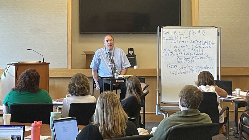 The institute, also directed by Murphy, provided an overview of First Amendment jurisprudence grounded in primary documents. Experts in the field of constitutional law taught daily lectures covering an ambitious array of topics: First Amendment law in the Roberts Court, the debate between originalist and living constitutionalist interpretations of the Constitution, levels of scrutiny and the right to privacy, the relationship between the First Amendment and issues of racial justice, and religious freedom.