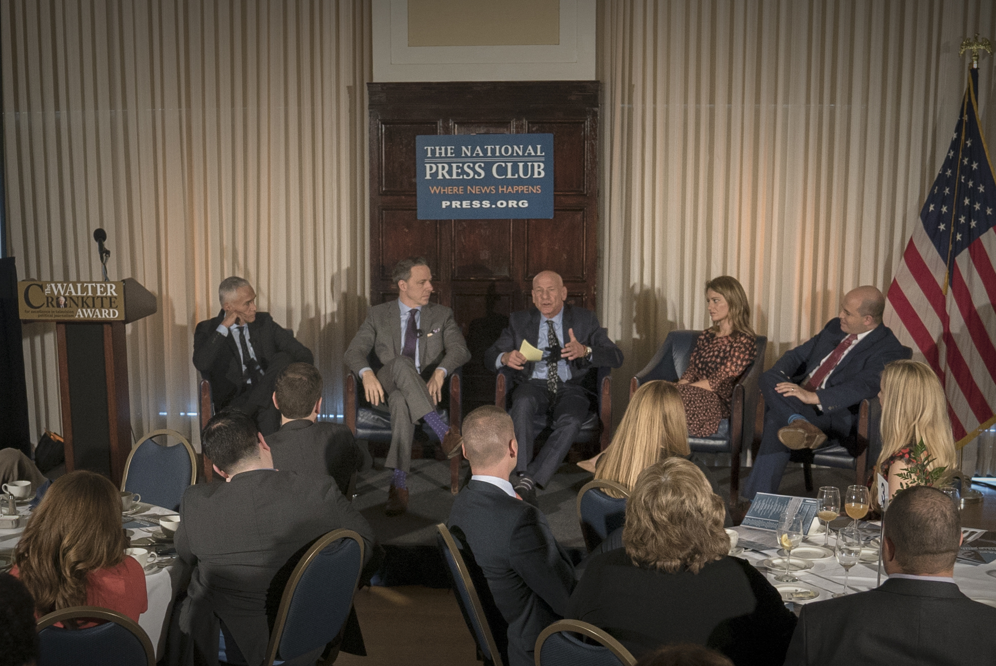 Award-winners Jorge Ramos (Univision News and Fusion), Jake Tapper (CNN), Katy Tur (NBC News and MSNBC), and Brian Stelter (CNN), joined a panel moderated by Marty Kaplan, Director of the USC Annenberg Norman Lear Center, to discuss covering President Trump, the importance of accurate news reporting, and the impact of social media on journalism. Watch the panel’s discussion below.